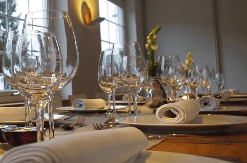 Die Grundleistungen wie die Räumlichkeiten, Getränke, Tischwäsche, Geschirr, Besteck und weiteres vorhandenes Mobiliar wird bei uns Pauschal abgerechnet.